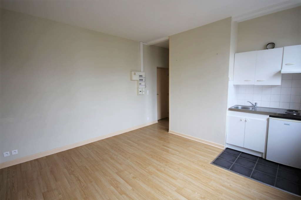 A LOUER, Place Fernig Référence 3808 Studio de 21 m² donnant sur la Place Fernig, comprenant une pièce de vie, une kitchenette (plaque, hotte, frigo), une SDD (douche, WC et branchement MAL).Proche du campus universitaire.