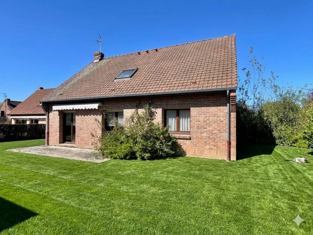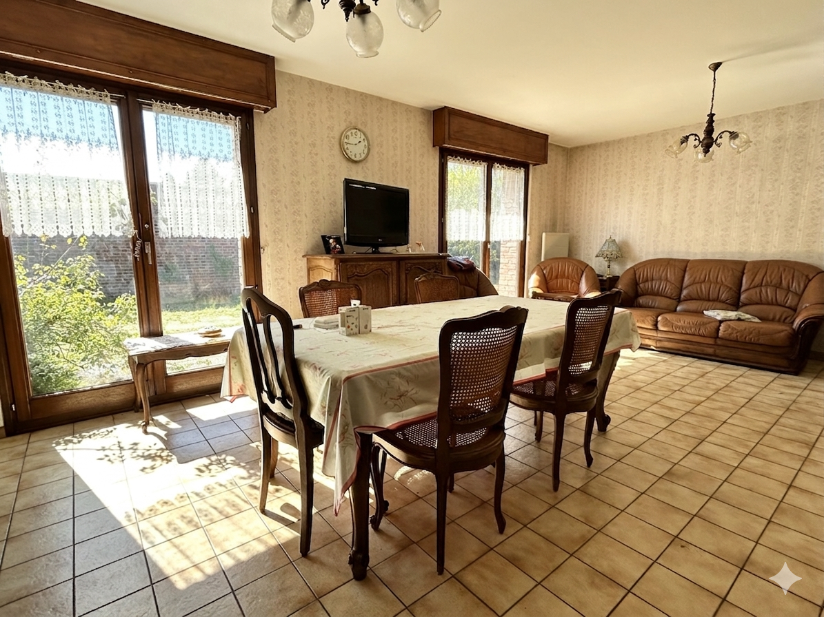 En hypercentre de Bondues, en fond d'allée privée, maison individuelle de 96m2 habitables et 185m2 utiles.Au rez-de-chaussée, un hall d'entrée avec placards, un bureau, un séjour de 30m2 avec cheminée donnant sur un jardin d'environ 300m2 et exposé plein Sud., une grande cuisine équipée et indépendante avec espace repas, deux chambres de 10m2 et 15m2, et une salle de bains.