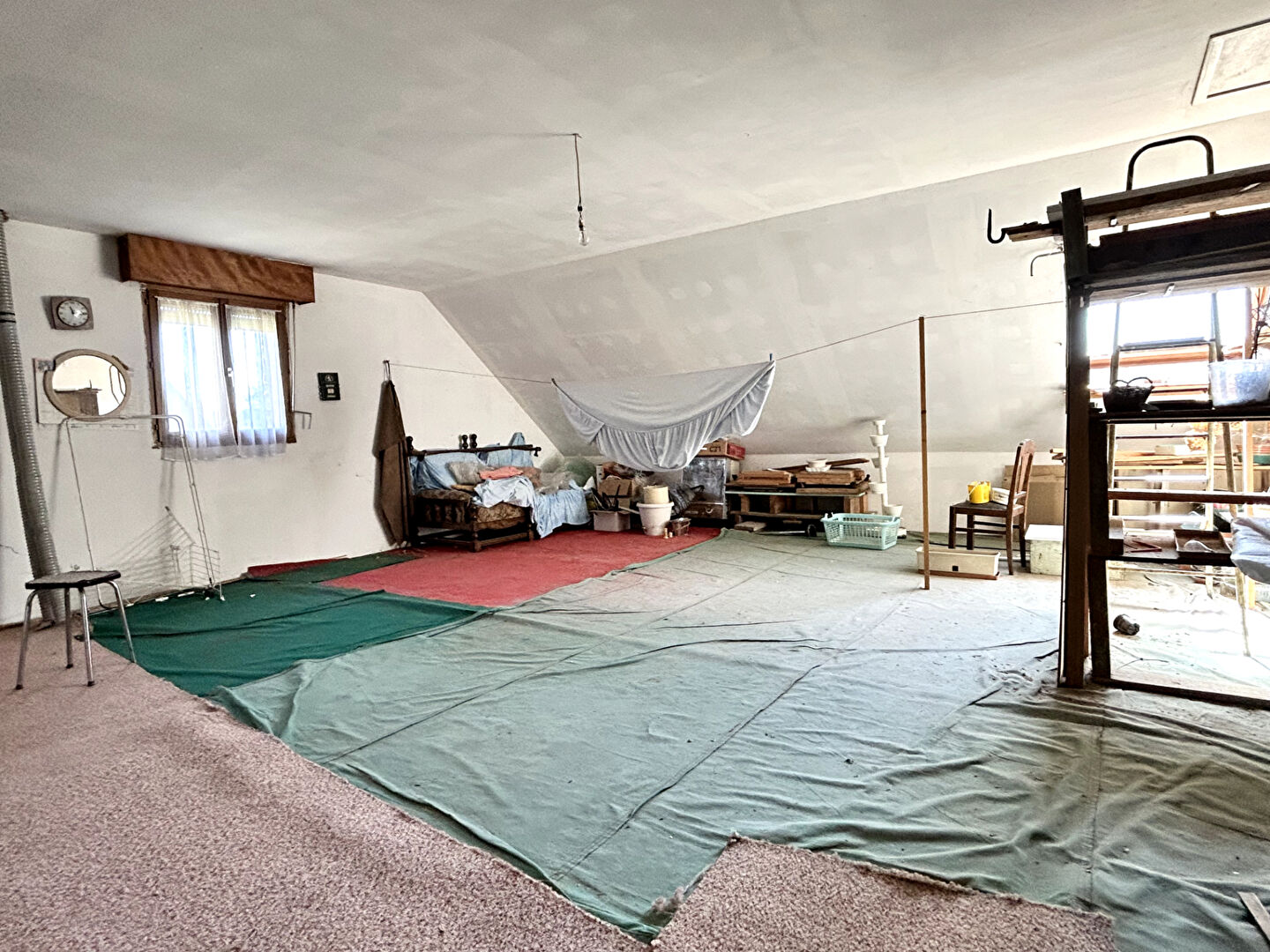 A l'étage un plateau de près de 90m2 au sol, pré aménagé, à conforter, donnant une potentiel maison de +/- 160m2 habitables en semi-plain-pied.