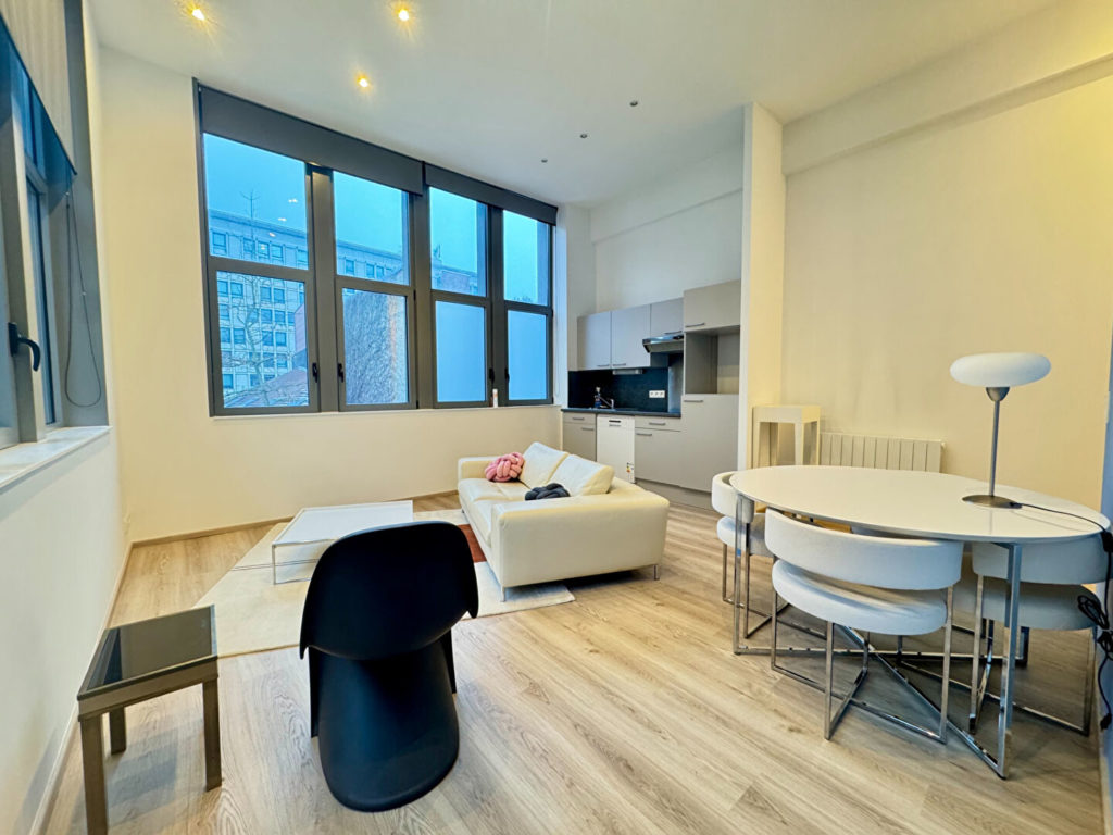 A proximité immédiate du quai du Wault, dans l'un des secteurs les plus recherchés du Vieux-Lille, découvrez cet appartement de 57 m², situé au sein d'une copropriété intégralement rénovée il y a une dizaine d'années. L'appartement bénéficie d'un calme total, donnant exclusivement sur cour. La pièce de vie, avec belle hauteur sous plafond et grandes ouvertures, offre un volume agréable et lumineux.La cuisine, intégrée à l'espace de vie, est bien équipée et fonctionnelle. L'agencement comprend également : ? un espace bureau, ? une chambre, ? une salle de bain. L'ensemble est soigné, cohérent, avec des prestations de qualité, dans un environnement privilégié. (4.18 % honoraires TTC à la charge de l'acquéreur.) Copropriété de 23 lots - dont 9 lots habitation.